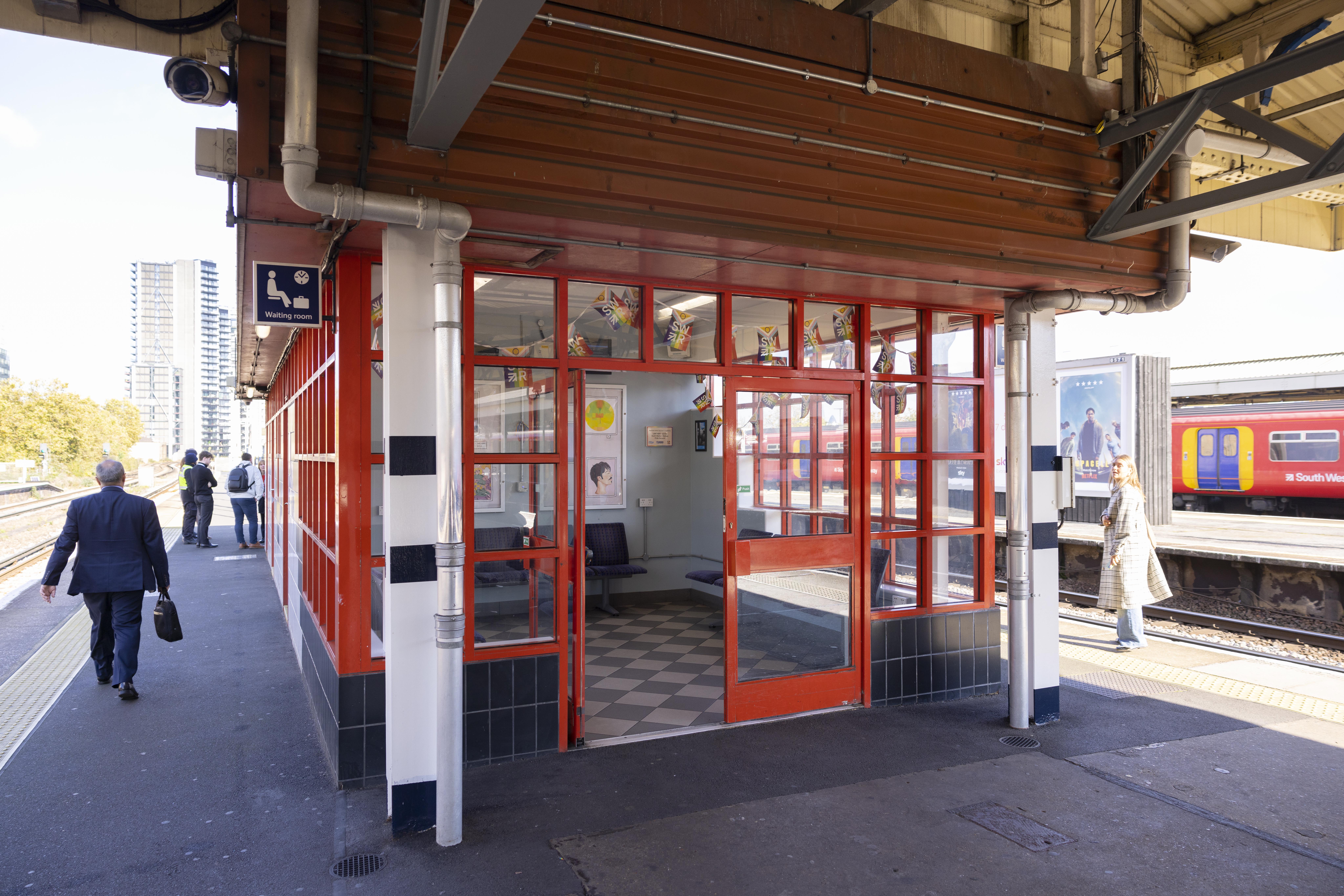 This morning Florence Eshalomi MP, SWR’s Managing Director, Stuart Meek, and LGBT HERO’s Chair, Alan Palmer, unveiled a commemorative plaque and pieces by local LGBTQ+ artists at the station’s waiting room, where they also cut a rainbow ribbon.